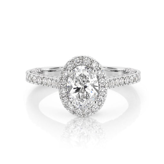 Oval micropave Halo Ring with 2.25 ct/18k white gold