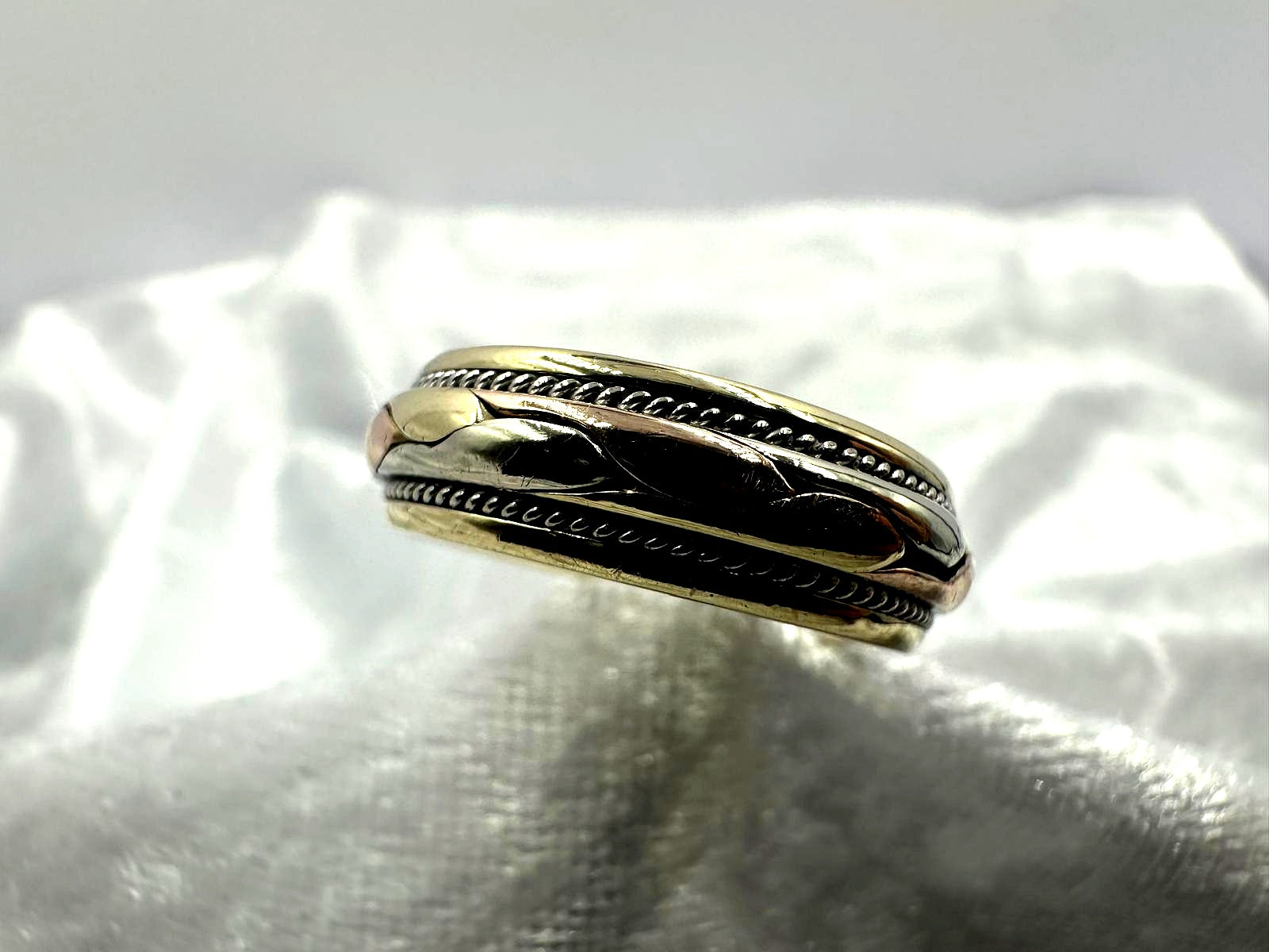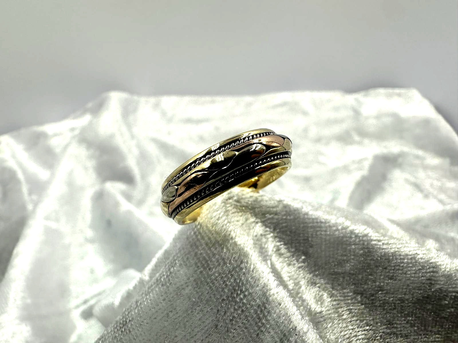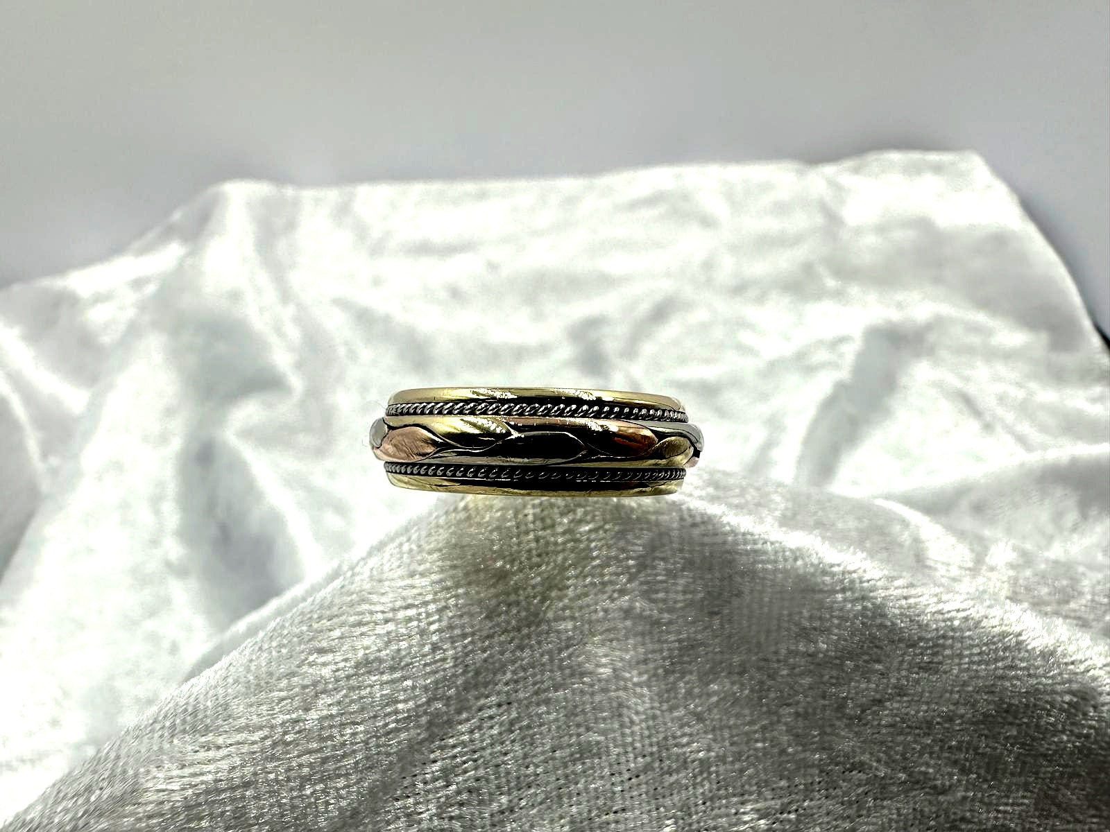 14K yellow gold inner and sides, with tri tone centre in a rope design.