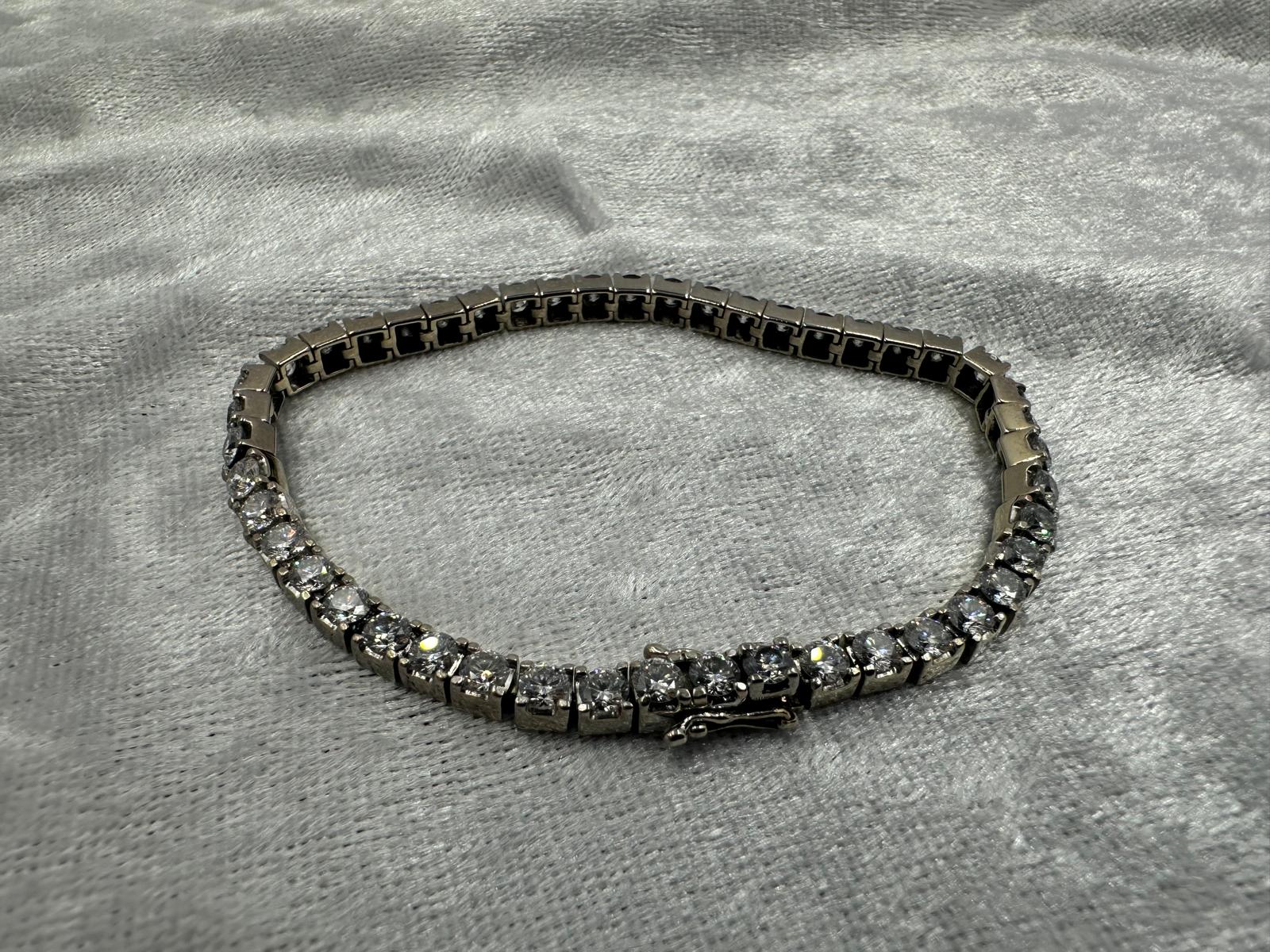 18K white gold box tennis bracelet. 6.44 Total carat weight