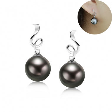 Diamond Story Dangle Tahitian Earrings with swirl pattern