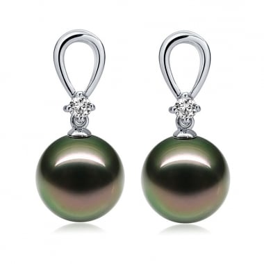 Diamond Story Dangle Tahitian Earrings with diamonds